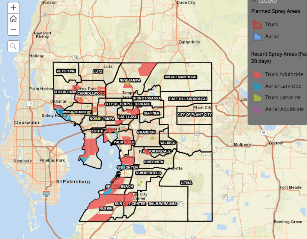 However, this place is one of the well-monitored areas in Hillsborough County. It’s regularly sprayed via truck larvicide, according to the spray areas map established by the county.